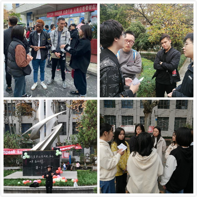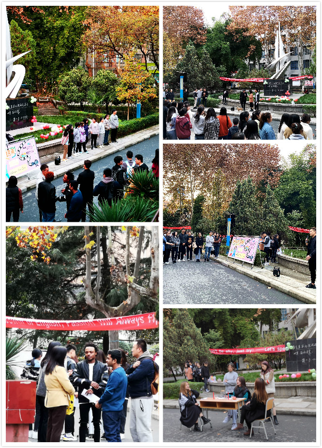 為豐富校園文化生活,提高同學(xué)們的英語口語水平,外語學(xué)院“西視界”社團于2020年11月18日下午16:30在江南校區(qū)一號食堂前花園成功舉辦了主題為“待疫畢,花正盛,你想在世界的哪一隅邂逅美好?”的英語角活動。外語學(xué)院全體學(xué)生及國際交流學(xué)院留學(xué)生代表參加了此次活動。外語學(xué)院領(lǐng)導(dǎo)班子、外教Frank先生、專業(yè)社團指導(dǎo)教師出席了活動。