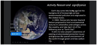 在Free talk環(huán)節(jié),主持人榮幸地邀請到了James和Yahness兩位留學(xué)生向同學(xué)們介紹了自己來到中國后的有趣生活,兩位留學(xué)生用幽默風(fēng)趣的語言介紹了自己在中國的留學(xué)經(jīng)歷,之后就“世界地球日”(World Earth Day)這個主題展示了精彩的talk show。也將活動氛圍推向高潮。同時,同學(xué)們也六號樓教室、小花園和操場積極展開了自己對于地球保護的看法和理解的討論。