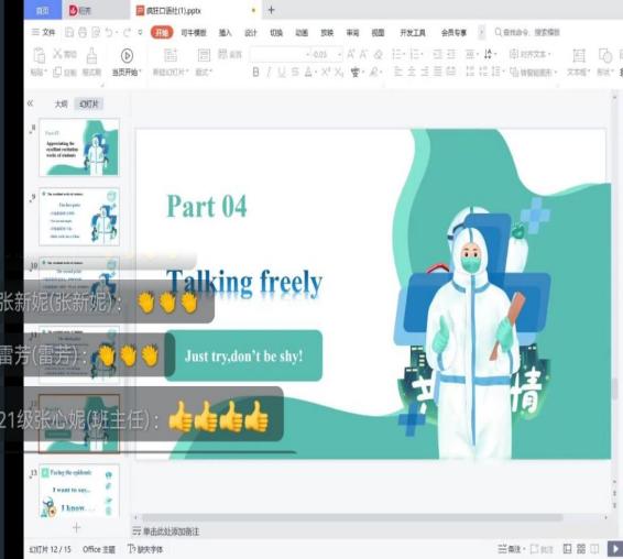 最后,伴隨著同學(xué)們積極熱烈的線上討論,本次線上活動(dòng)也順利地接近了尾聲。雖然由于疫情原因拉遠(yuǎn)了大家的空間距離,但是卻并沒有削弱大家的語言學(xué)習(xí)實(shí)踐的積極性,此次英語美文朗誦比賽為學(xué)生們提升語言能力、展示個(gè)人風(fēng)采提供了平臺(tái),鼓勵(lì)他們積極提升英語口語,增強(qiáng)專業(yè)知識(shí),體會(huì)語言的魅力。