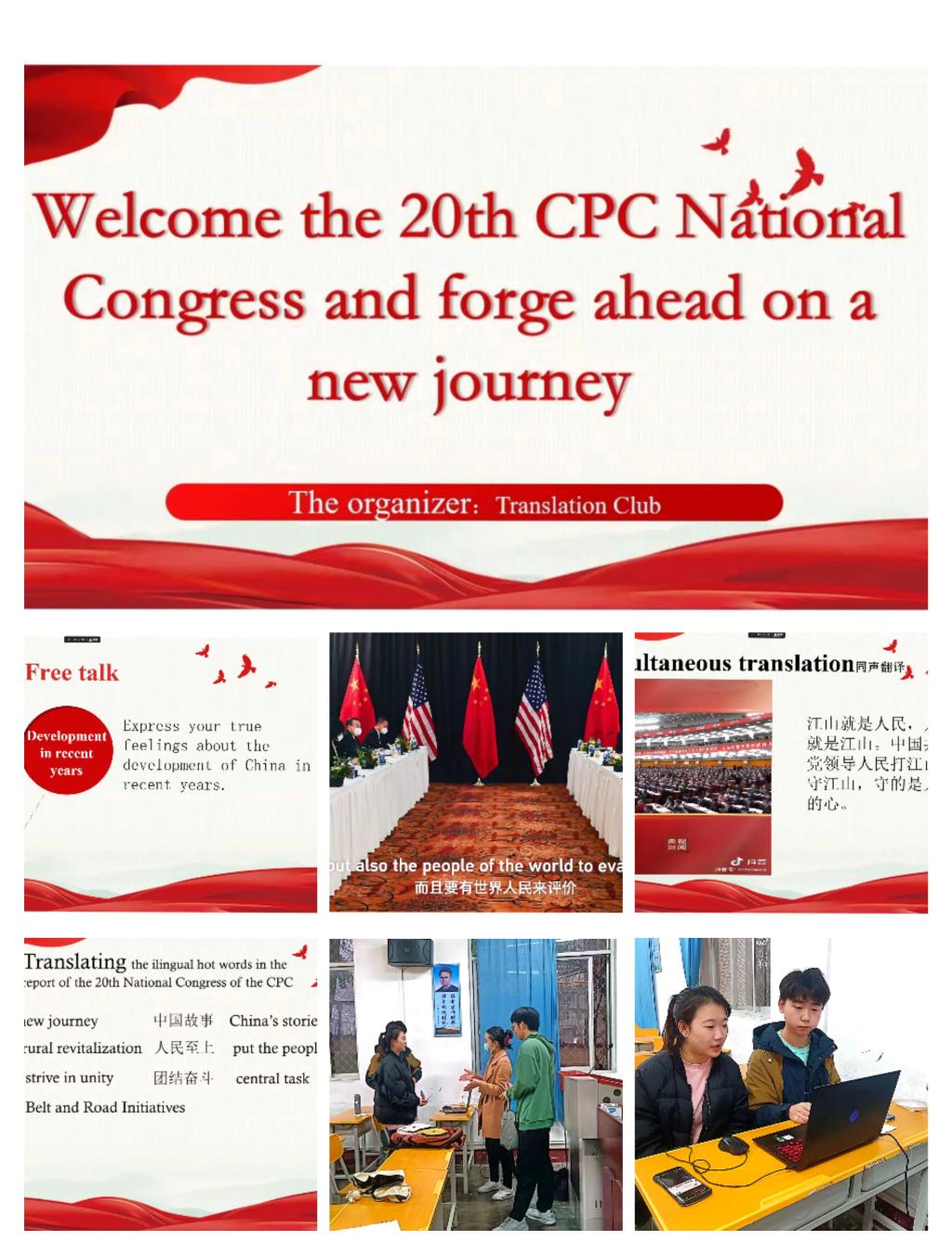 藍圖繪就風正勁,揚帆破浪奮進時,為更好的從專業(yè)角度學習、宣傳、貫徹黨的二十大精神,促進專業(yè)融合,彰顯新時代學子有理想、敢奮斗的精神風貌,11月23日下午,外語學院翻譯社承辦了“學習二十大,奮斗新征程”線上英語角活動。