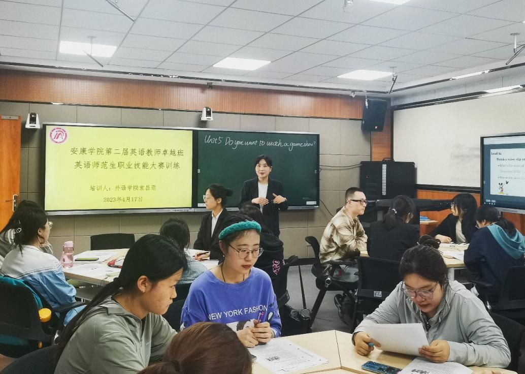 為進(jìn)一步為提高師范生教育教學(xué)技能,培養(yǎng)師范生教學(xué)實(shí)踐能力,貫徹實(shí)施《安康學(xué)院第二屆英語(yǔ)教師卓越班實(shí)施方案》,4月16日上午,外語(yǔ)學(xué)院在師范生實(shí)訓(xùn)中心4204教室舉辦第二屆英語(yǔ)教師卓越班英語(yǔ)師范生職業(yè)技能大賽專題培訓(xùn)活動(dòng)。卓越班全體學(xué)員參加了培訓(xùn)。培訓(xùn)由外語(yǔ)學(xué)院青年教師袁昌麗主講。