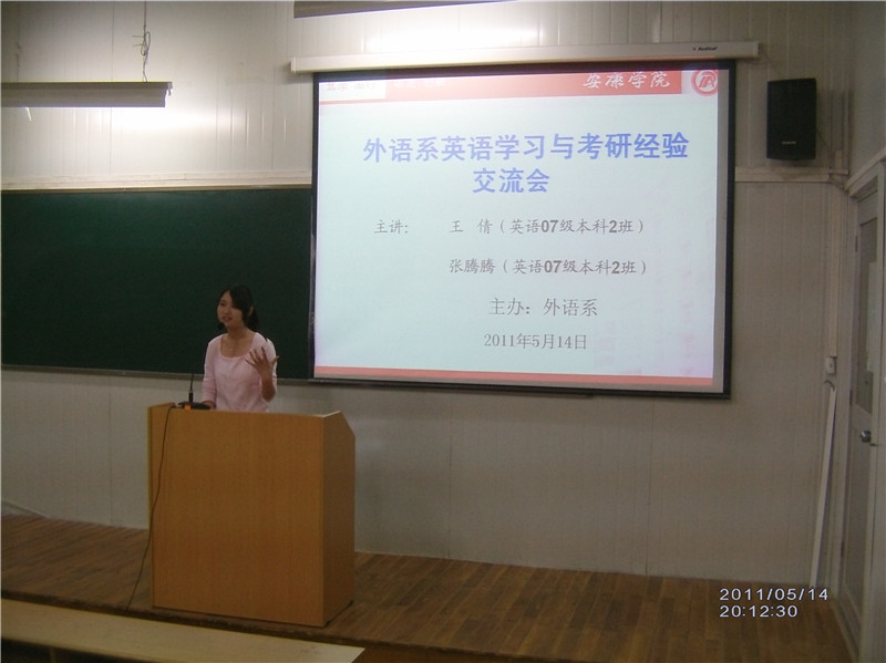 為了給同學們搭建更加良好的英語學習與考研交流平臺,更加充分利用優(yōu)秀畢業(yè)生資源,使08級、09級同學設定更實際的學習目標,更明確努力的方向,找到有效地學習方法,由外語系主辦的首場英語專業(yè)學習與考研經驗交流會,于5月14日晚在6408教室成功舉辦。外語系英語專業(yè)的近百名同學參加了此次交流會。