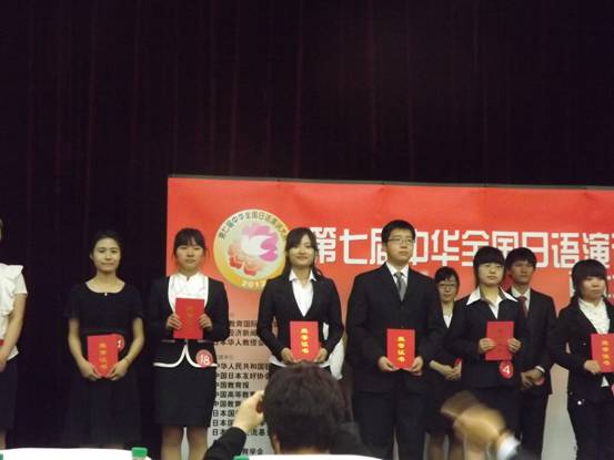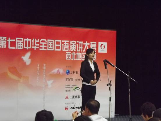 第七屆中華全國日語演講大賽由中國教育國際交流協(xié)會(huì)、日本華人教授會(huì)議、日本經(jīng)濟(jì)新聞社共同主辦。本次比賽共有來自西北五省區(qū)22所高校的22名選手參加,9名中日專家擔(dān)任評(píng)委。比賽分命題演講和即席演講兩個(gè)環(huán)節(jié),命題演講以“連接中日兩國的紐帶---跨文化交流的重要性”和“我與微博”為主題,即席演講題目由選手在上臺(tái)10分鐘前抽取。