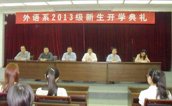 9月9日上午,外語系2013級新生開學(xué)典禮在圖書館報告廳舉行。外語系主任哈紅光、黨總支書記李延福、大學(xué)英語教學(xué)部主任李繼平、系副主任張哲華以及新生輔導(dǎo)員常遠紅等參加了典禮。開學(xué)典禮由學(xué)工辦主任任森龍主持。