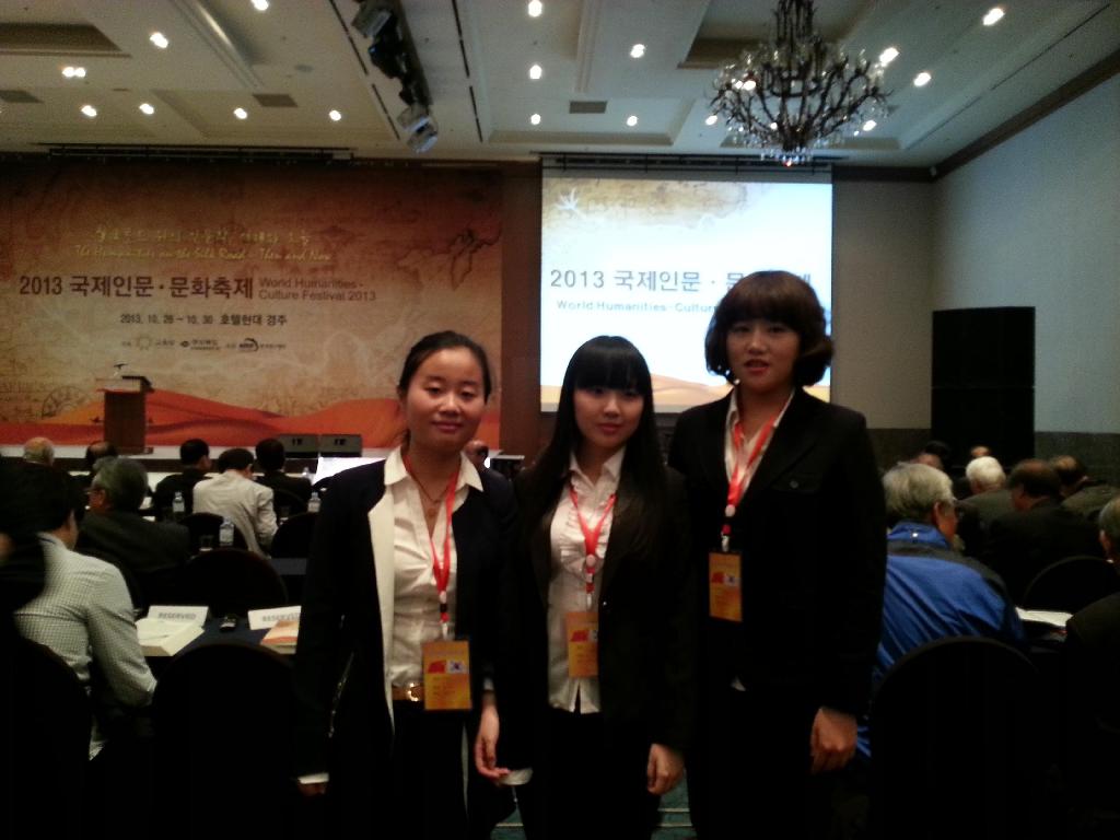 2013年10月27日至11月1日,我系10級學(xué)生吳瓊、11級學(xué)生陶詩意和劉佳妮等3名學(xué)生(全校10名)通過了學(xué)校國際交流處的申請選拔,被選派赴韓參加由韓國教育部、慶尚北道政府、聯(lián)合國教科文組織亞太總部在韓國慶州市、安東市共同主辦的“通過人文相見-韓中青年論壇”。