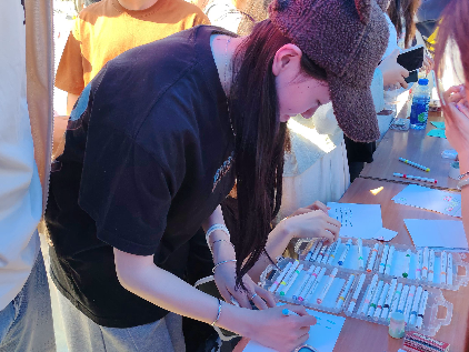 活動(dòng)精心設(shè)置了五個(gè)特色區(qū)域,分別為宣泄解壓區(qū)、藝術(shù)表達(dá)區(qū)、智力挑戰(zhàn)區(qū)、潛能開發(fā)區(qū)和朋輩互助區(qū)。在宣泄解壓區(qū),同學(xué)們紛紛將寫滿煩惱的中英文紙條投入“情緒垃圾桶”,以此釋放積聚的負(fù)面情緒,重新找回心靈正能量;在藝術(shù)表達(dá)區(qū),同學(xué)們充分發(fā)揮創(chuàng)造力,用心靈繪制出一幅幅獨(dú)特的畫作,讓內(nèi)心想法鮮活地躍然“紙”上;