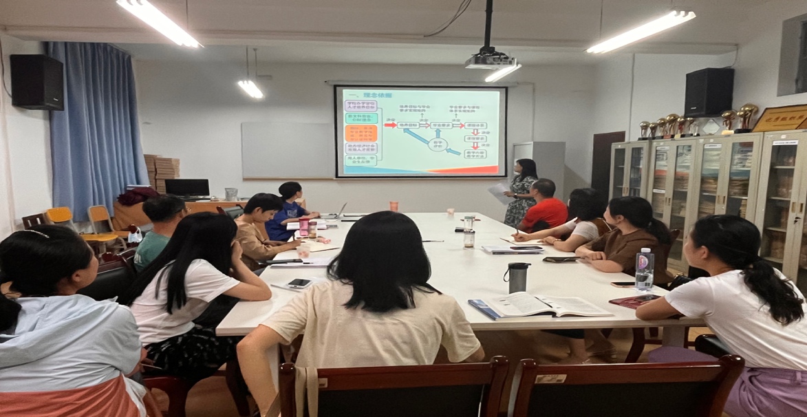 為貫徹落實教育部關(guān)于高等學(xué)校人才培養(yǎng)要求,進(jìn)一步優(yōu)化2022級專業(yè)人才培養(yǎng)方案,全面提高應(yīng)用型人才培養(yǎng)質(zhì)量,在專業(yè)前期廣泛調(diào)研、充分論證的基礎(chǔ)上,9月14日下午,外語學(xué)院召開了“外語學(xué)院專業(yè)負(fù)責(zé)人說專業(yè)”暨人才培養(yǎng)方案答辯論證會。會議由教學(xué)副院長胡衛(wèi)衛(wèi)主持。學(xué)院教學(xué)督導(dǎo)陳平、英語、商務(wù)英語專業(yè)系主任周玫、彭方圓,英語、商務(wù)英語全體教師參加了此次活動。