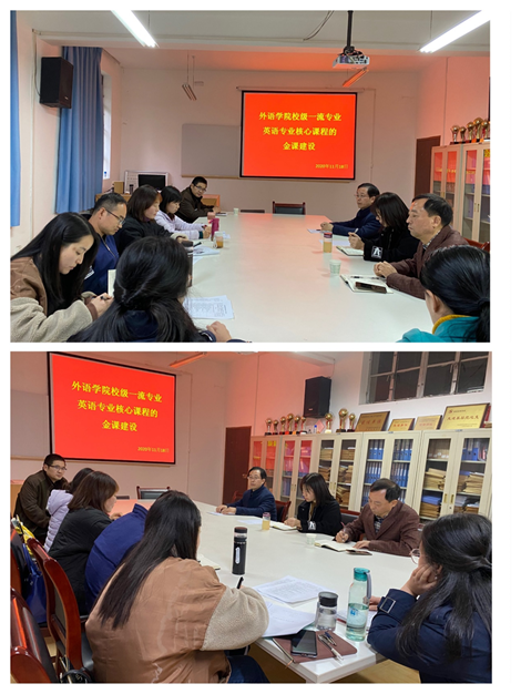 11月18日下午,外語學院英語系在6109舉行了主題為“校級一流專業(yè)英語專業(yè)核心課程的金課建設(shè)”教學沙龍活動。沙龍由英語系主任周玫主持,英語系全體教師參加,校督導(dǎo)哈紅光教授、學院督導(dǎo)組長陳平教授應(yīng)邀蒞臨指導(dǎo)。