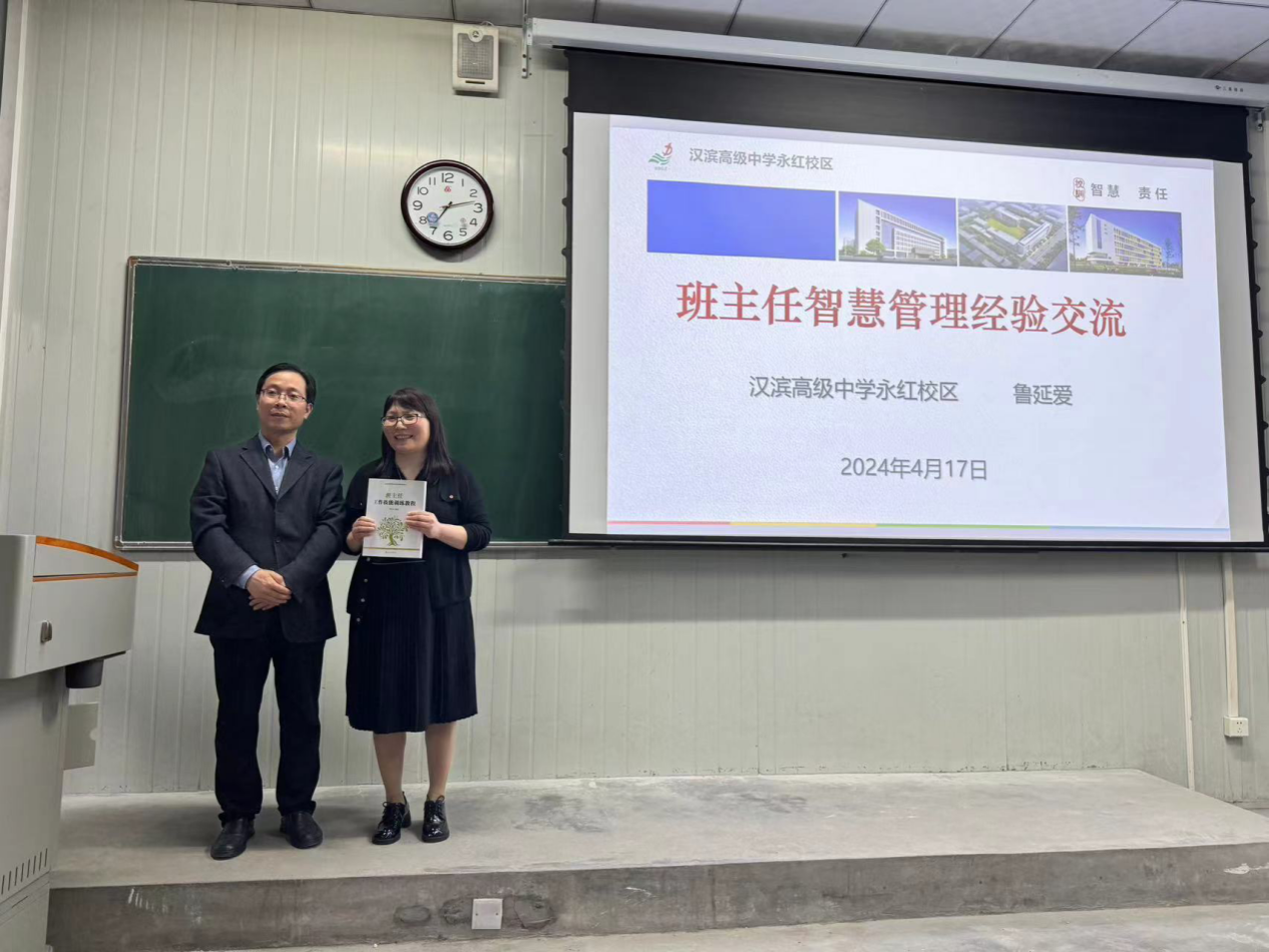為深入推進英語專業(yè)雙師課程建設(shè),助力師范生綜合育人能力提升,4月17日晚,在1027教室,漢濱高級中學(xué)永紅校區(qū)優(yōu)秀班主任魯延愛應(yīng)邀為英語2021級師范生講授班級智慧管理方法和策略。雙師課負責(zé)人外語學(xué)院院長張哲華,班主任技能訓(xùn)練課程主講教師王歡,新進教師王小蝶,呂艾桁一同聽課。課前,張哲華對魯延愛老師做了簡要介紹,并將他編寫的《班主任工作技能訓(xùn)練教程》贈與魯老師。