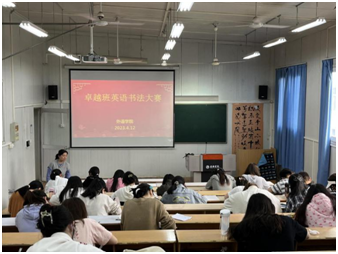 為進一步強化卓越班學(xué)員的英語教師職業(yè)技能,以賽促練,以賽促學(xué),4月12日下午,外語學(xué)院英語教師卓越班英文書法比賽在六號教學(xué)樓6407教室舉行。第二屆英語教師卓越班40名學(xué)員參加了比賽。