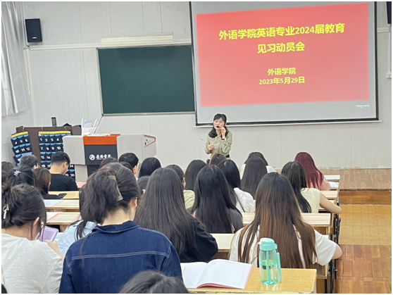 5月29日下午,外語(yǔ)學(xué)院在6405教室召開了2022-2023學(xué)年第二學(xué)期師范生教育見習(xí)動(dòng)員大會(huì)。外語(yǔ)學(xué)院副院長(zhǎng)胡衛(wèi)衛(wèi)、系主任周玫、教師教育團(tuán)隊(duì)教師袁昌麗及2020級(jí)英語(yǔ)專業(yè)及2022級(jí)英語(yǔ)專升本學(xué)生參加了此次動(dòng)員大會(huì),會(huì)議由周玫主持。