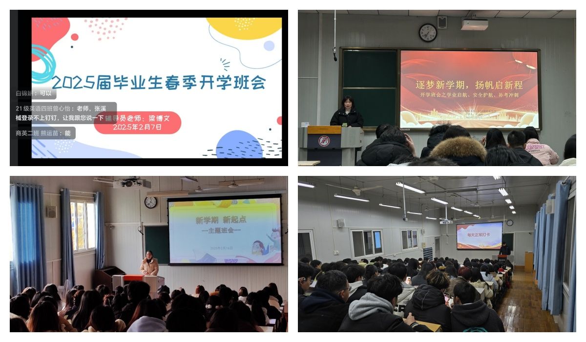 為有序推進新學期教育教學與校園安全管理工作,2 月 16 日,外語學院全體輔導員以線上線下融合的形式開展 “開學第一課” 主題班會。
