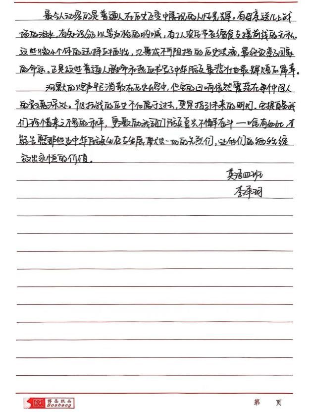 同學們紛紛表示,思政課上的歷史故事與精神闡釋讓自己深受觸動,從抗戰(zhàn)先烈“舍生取義、保家衛(wèi)國”的英雄事跡中讀懂了民族脊梁的重量,也更加清晰地認識到當代青年應扛起的時代責任與歷史使命。