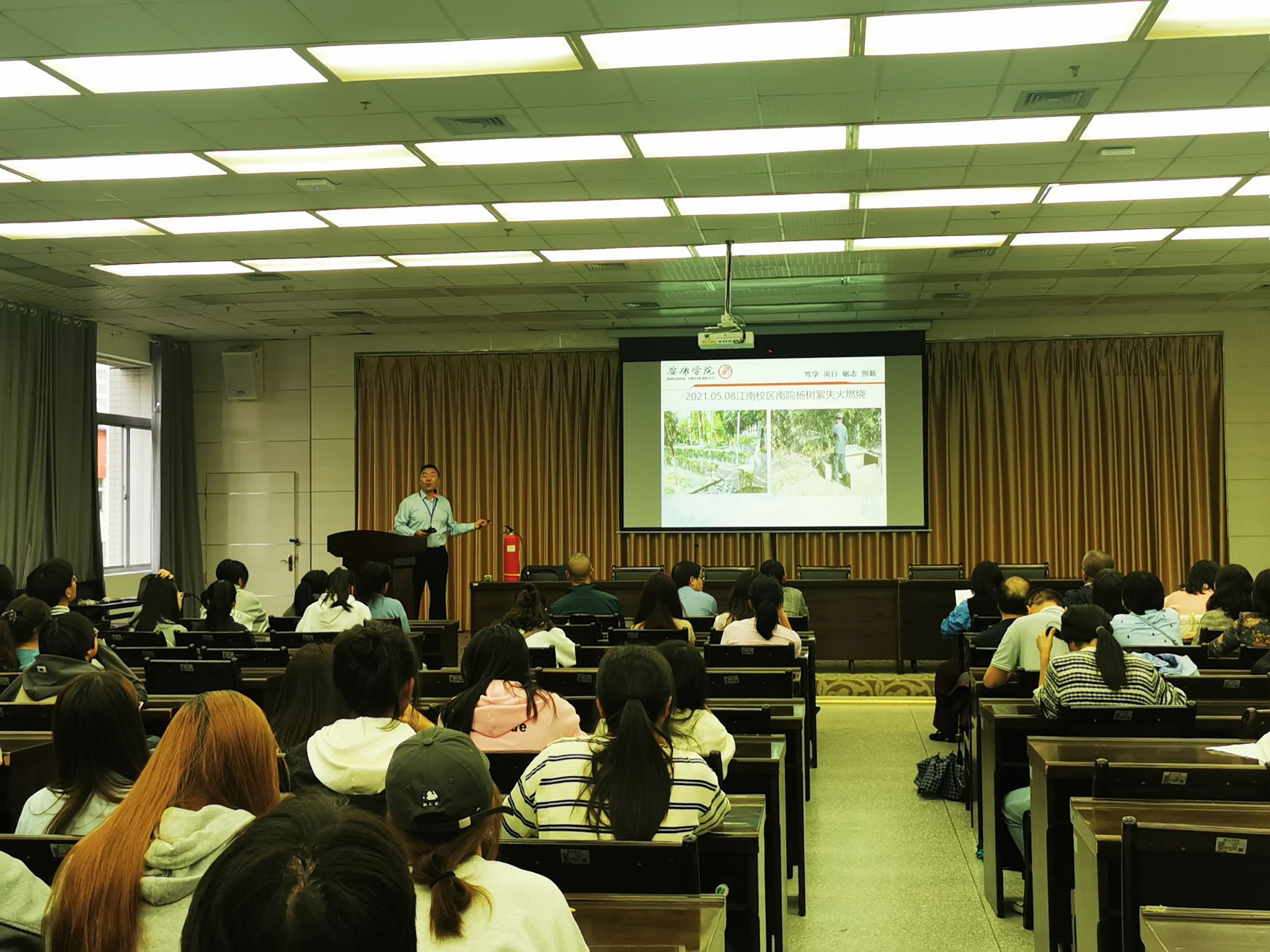 會(huì)議還邀請(qǐng)了保衛(wèi)處處長(zhǎng)王開(kāi)忠為師生們開(kāi)展了安全知識(shí)培訓(xùn)。王開(kāi)忠從國(guó)家安全、社會(huì)安全和個(gè)人安全等方面為師生們做了詳細(xì)的講解和指導(dǎo),并從網(wǎng)絡(luò)安全、防火(爆)、防騙、防盜、打架及糾紛、傳銷等20種大學(xué)生中常見(jiàn)的安全問(wèn)題及預(yù)防措施,結(jié)合身邊的典型案例,為青年學(xué)生在個(gè)人安全方面做了深刻生動(dòng)的安全教育指導(dǎo)。