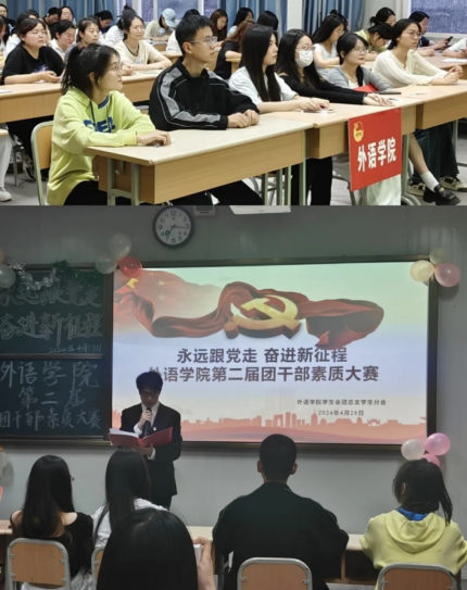 為全面貫徹落實習近平總書記關于青年工作的重要思想,發(fā)揮優(yōu)秀團組織及個人的典型示范作用,激勵各級團組織、學生組織和廣大學生干部銳意進取、創(chuàng)先爭優(yōu)。4月28日晚上七點,外語學院于1025教室開展了團干部素質(zhì)大賽。本次大賽在團總支書記梁博文老師的指導下開展,由外語學院團總支副書記謝建橋、張佳璐、路荔雯,學生會輪值主席王若彤,以及監(jiān)察部部長何金霜和吳畑畑等擔任評委,共同見證了選手們的精彩表現(xiàn)。