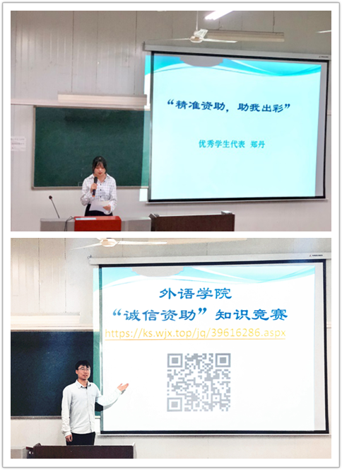 誠信是為人之道、立業(yè)之本。為了落實國家資助政策、發(fā)揮資助育人功效,5月19日晚,安康學院外語學院在六號教學樓6405教室召開了“資助政策,助我成長;誠信做人,憧憬未來”主題班會。本次班會由外語學院輔導員梁博文老師主持,輔導員常遠紅和外語學院17級18級的部分學生參加了此次主題班會活動。