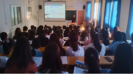 徐長江通過宣傳PPT和視頻為學生介紹了馬來西亞的社會習俗以及文化背景,并展示了馬來西亞瑪拉工業(yè)大學的師資情況和申請條件,說明了國際英語教師培養(yǎng)項目的重要意義,通過詳細的數(shù)據(jù)說明近年來讀研、考碩的重要性,向學生說明了海外留學也是畢業(yè)去向選擇的較好路徑。