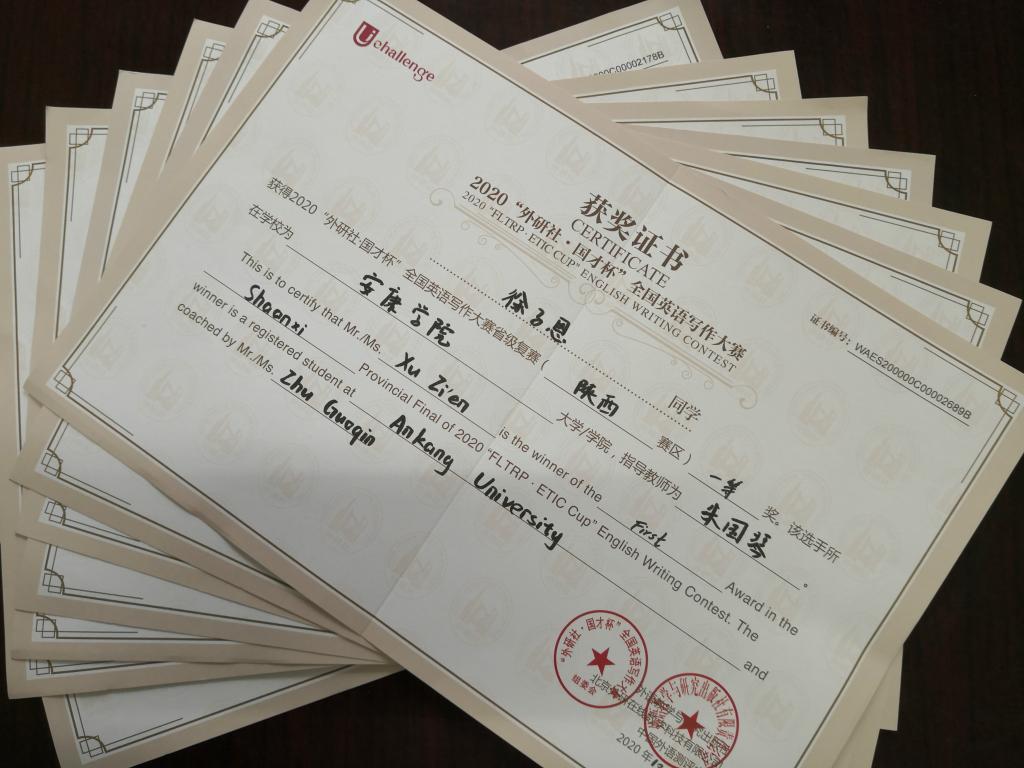 2020年10月31日,“外研社·國(guó)才杯”全國(guó)英語(yǔ)寫作大賽、演講大賽、閱讀大賽陜西賽區(qū)復(fù)賽在西安建筑科技大學(xué)落下帷幕。我校選手憑借對(duì)賽題準(zhǔn)確的理解、精妙的構(gòu)思、扎實(shí)的語(yǔ)言功底和沉著冷靜的心理素質(zhì),在與來自全省高校168名選手的角逐中脫穎而出。最終,外語(yǔ)學(xué)院2019級(jí)徐子恩同學(xué)榮獲寫作大賽一等獎(jiǎng)、趙紫瑋、張雅迪獲三等獎(jiǎng);在演講大賽中,外語(yǔ)學(xué)院王子浩同學(xué)榮獲三等獎(jiǎng);在寫作大賽中,外語(yǔ)學(xué)院晉紫瑞、王超同學(xué)及數(shù)統(tǒng)學(xué)院的蔣佳怡同學(xué)分別榮獲三等獎(jiǎng)。