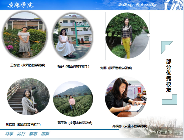 學(xué)院建立近40年來,為安康及周邊地區(qū)輸送3000余名合格中小學(xué)英語教師和近百名商務(wù)英語人才。部分校友已走上中小學(xué)和相關(guān)單位領(lǐng)導(dǎo)崗位或成為本單位業(yè)務(wù)骨干。