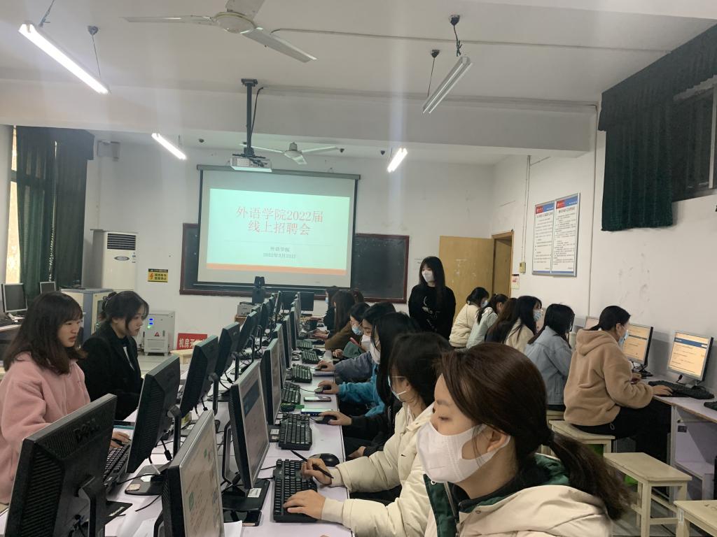 外語(yǔ)學(xué)院按照學(xué)校就業(yè)工作部署,于2022年3月23日上午在圖書(shū)館四樓北機(jī)房和6206機(jī)房,組織22屆全體畢業(yè)生集體參加本次線上招聘。外語(yǔ)學(xué)院黨總支書(shū)記肖紅香,畢業(yè)班輔導(dǎo)員常遠(yuǎn)紅、李夢(mèng)全程指導(dǎo)。此次招聘會(huì)采用網(wǎng)絡(luò)雙選會(huì)場(chǎng)+視頻面試的形式,用人單位線上發(fā)布招聘信息,查看畢業(yè)生簡(jiǎn)歷,通過(guò)網(wǎng)絡(luò)視頻對(duì)應(yīng)聘畢業(yè)生進(jìn)行面試;畢業(yè)生在線投遞簡(jiǎn)歷、申請(qǐng)面試,視頻面試及線上即時(shí)交流,互動(dòng)效果良好。