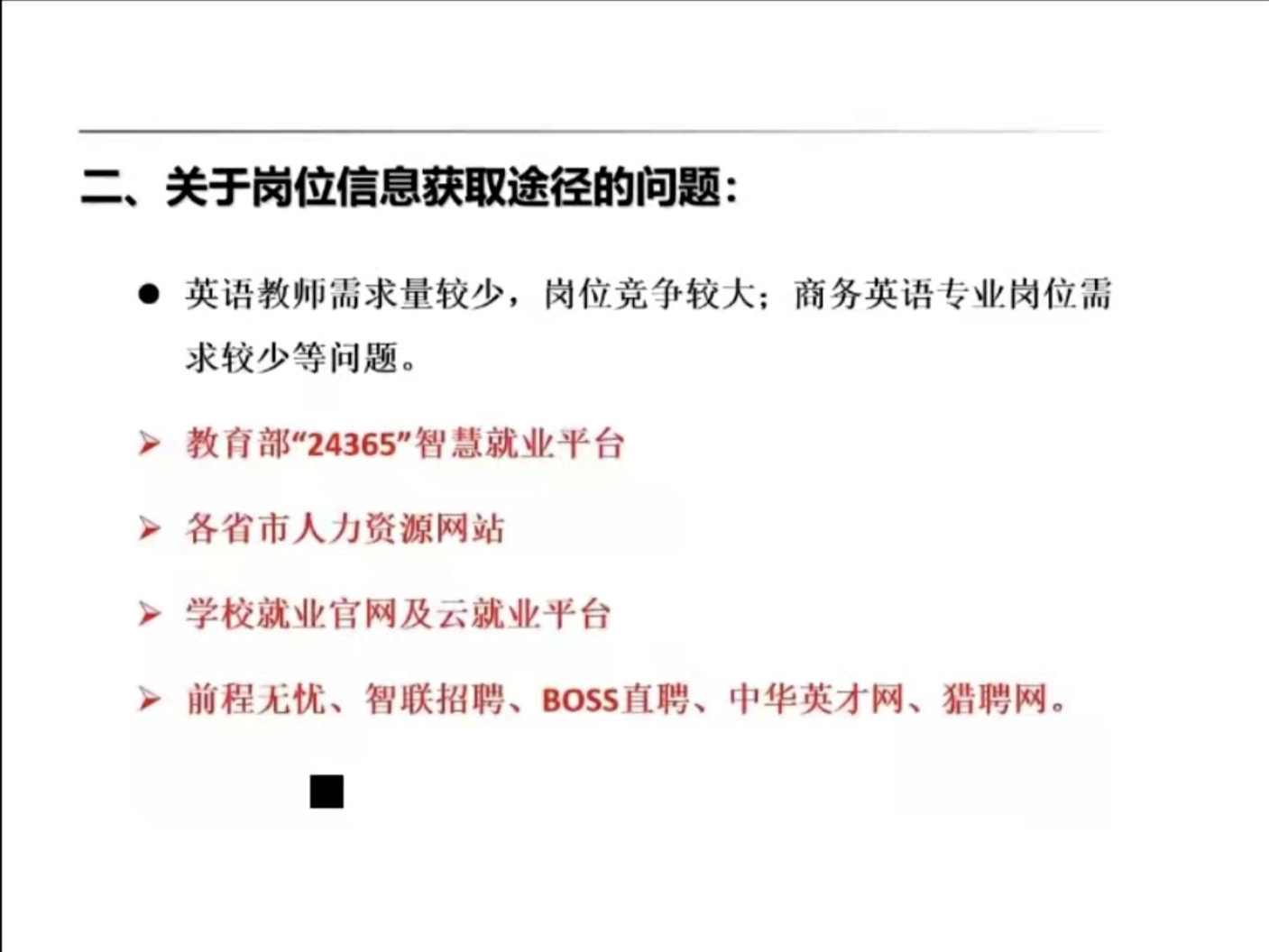 同時,結合線上招聘主陣地需求,鄭武斌還給畢業(yè)生們講授了網(wǎng)上應聘技巧、求職、視頻面試和網(wǎng)上簽約等注意事項,并結合成功應聘學生案例證明這些技巧的實用性和適用性。在線上答疑關節(jié),老師和同學們都針對目前面臨的就業(yè)問題積極提問,鄭武斌根據(jù)現(xiàn)實情況和畢業(yè)生需求進行了詳細且專業(yè)的解答。