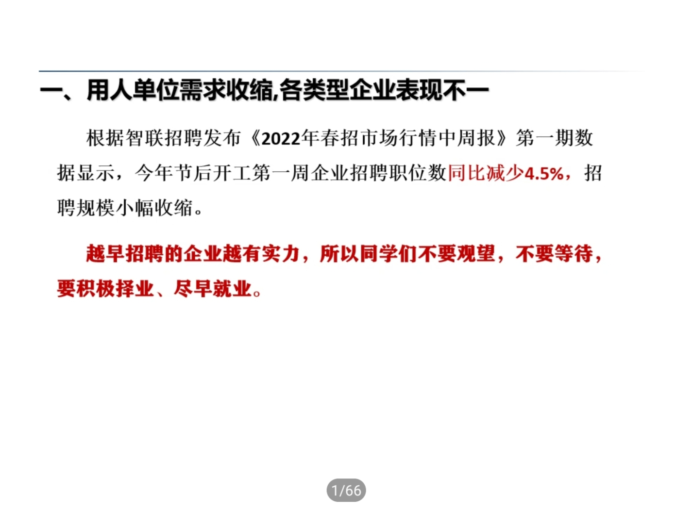 會上,鄭武斌在2022年就業(yè)形式分析中指出,當前畢業(yè)生就業(yè)形勢嚴峻復雜,受疫情影響和“雙減”政策雙重影影響,供需對接難度不斷加大,人才市場的供需情況表現(xiàn)出,用人單位需求收縮,各類企業(yè)表現(xiàn)不一,師范生就業(yè)崗位減少,盲目跟風考研、考公“熱”導致內(nèi)卷嚴重,傳統(tǒng)的線下招聘轉(zhuǎn)變?yōu)橐跃€上主陣地和線下招聘同時進行的招聘方式,都將對今年畢業(yè)生就業(yè)帶來了空前的難度和挑戰(zhàn),建議畢業(yè)生了解現(xiàn)狀并結合個人情況進行判斷和選擇,積極主動參加各類線上和線下招聘會。