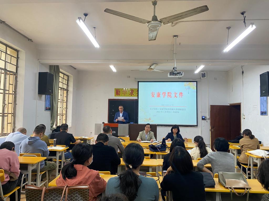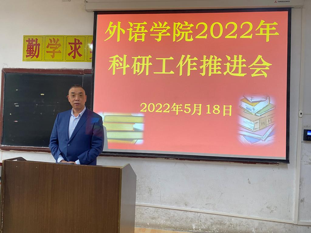 為全面貫徹落實(shí)《安康學(xué)院縱向科研項(xiàng)目經(jīng)費(fèi)管理辦法(修訂)》、《安康學(xué)院橫向科研項(xiàng)目管理辦法(修訂)》、《安康學(xué)院科研創(chuàng)新團(tuán)隊(duì)建設(shè)管理辦法(試行)》、《安康學(xué)院深度融入秦創(chuàng)原建設(shè)2022年工作要點(diǎn)》等文件精神,外語學(xué)院于2022年5月18日在6107教室組織召開了外語學(xué)院科研工作推進(jìn)會(huì),外語學(xué)院領(lǐng)導(dǎo)班子和全體教師出席了本次會(huì)議。