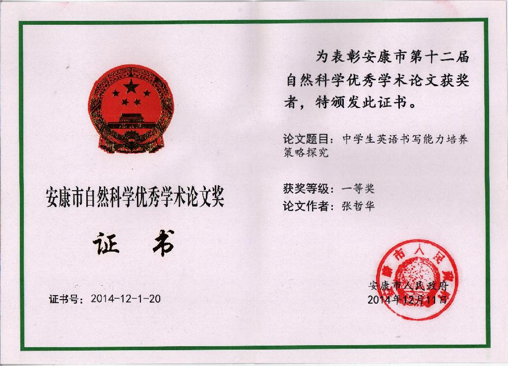 外語學(xué)院教師論文獲安康市政府一等獎