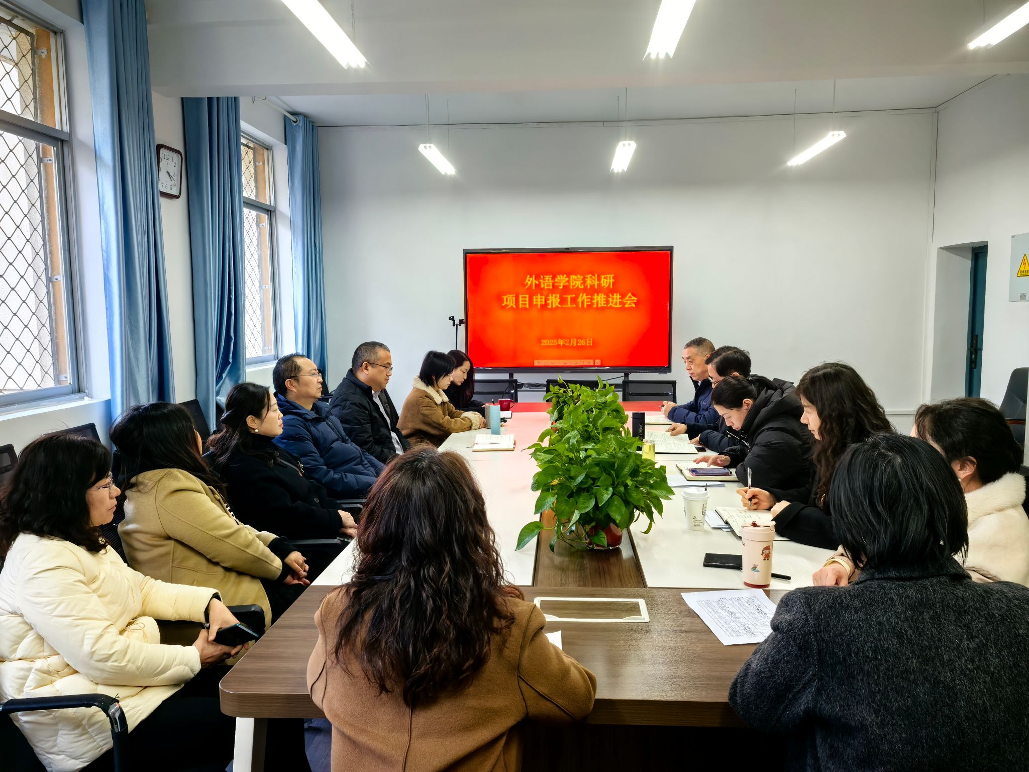 2月26日下午,外語學(xué)院在6208會(huì)議室召開2025年科研項(xiàng)目申報(bào)工作推進(jìn)會(huì)。學(xué)院領(lǐng)導(dǎo)班子、相關(guān)教師參加了本次會(huì)議。會(huì)議由副院長劉子富主持。