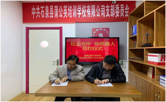 活動最后,安康學院外語學院副院長(主持工作)張哲華和石泉縣蒲公英培訓學校有限公司校長劉健強就未來校企合作,協(xié)同育人等達成共識,簽訂了新一輪校