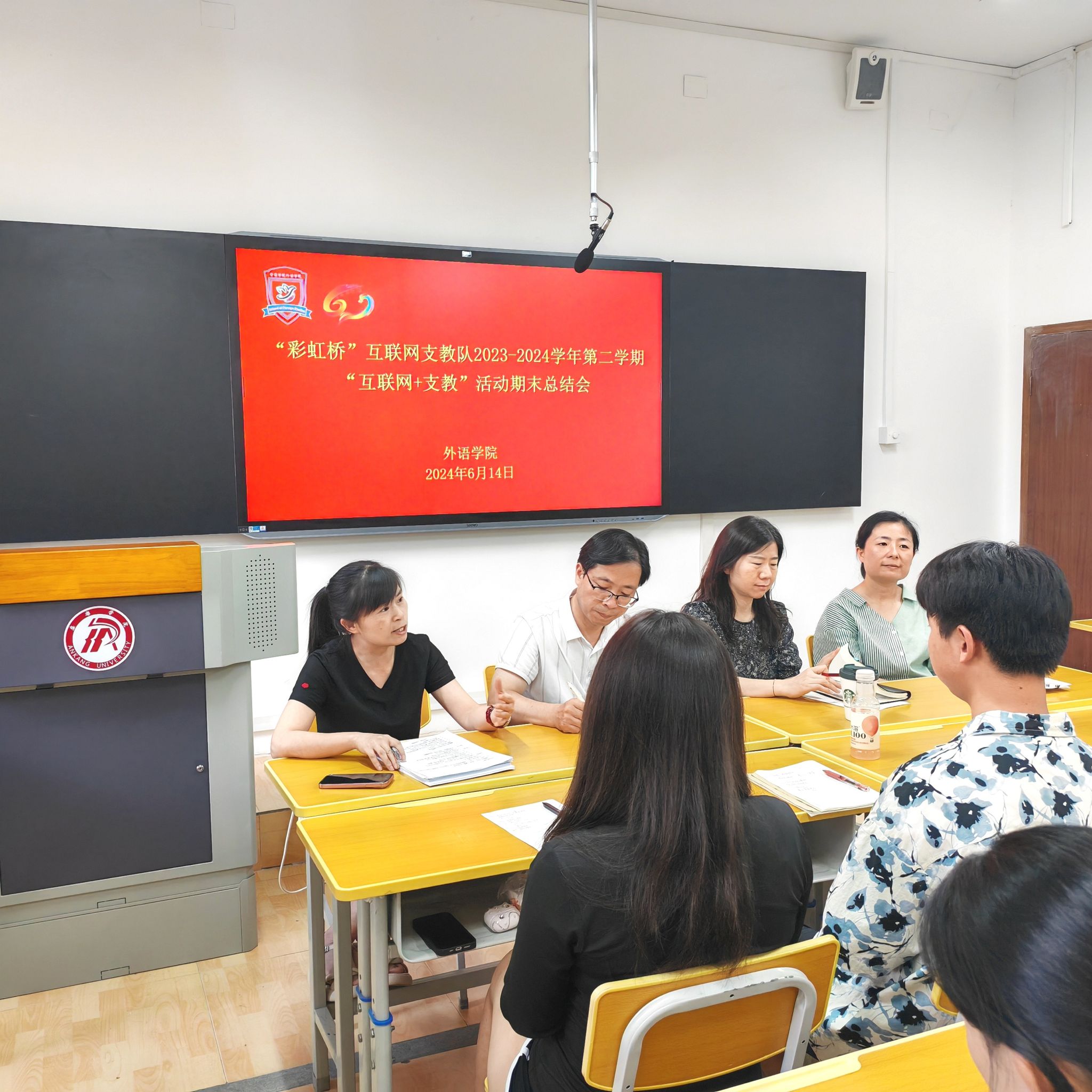 6月14日下午,外語學(xué)院“彩虹橋”互聯(lián)網(wǎng)支教隊于6107教室順利召開了本學(xué)期“互聯(lián)網(wǎng)+支教”活動期末總結(jié)會。外語學(xué)院領(lǐng)導(dǎo)班子、英語系主任、支教隊指導(dǎo)教師以及全體支教隊成員參加了此次會議。會議由支教隊隊長左依婷主持。