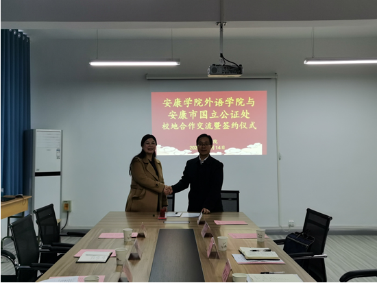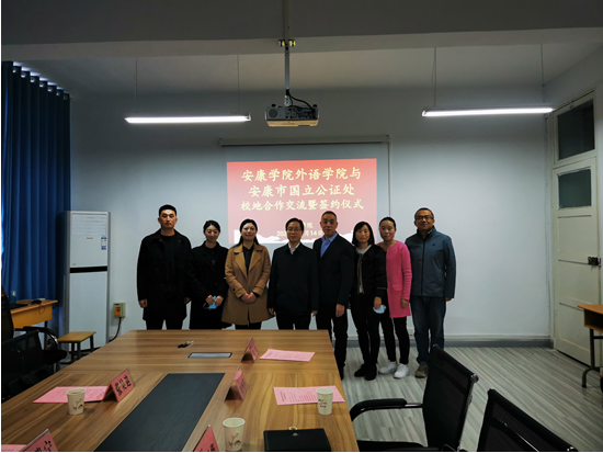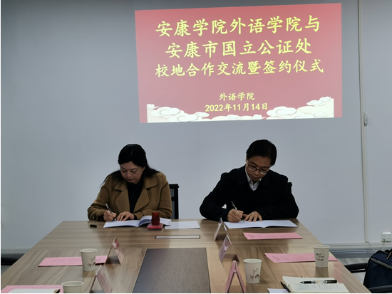 2022年11月14日,外語學(xué)院與安康市國立公證處舉行座談并簽訂共建教學(xué)科研實踐基地合作協(xié)議。