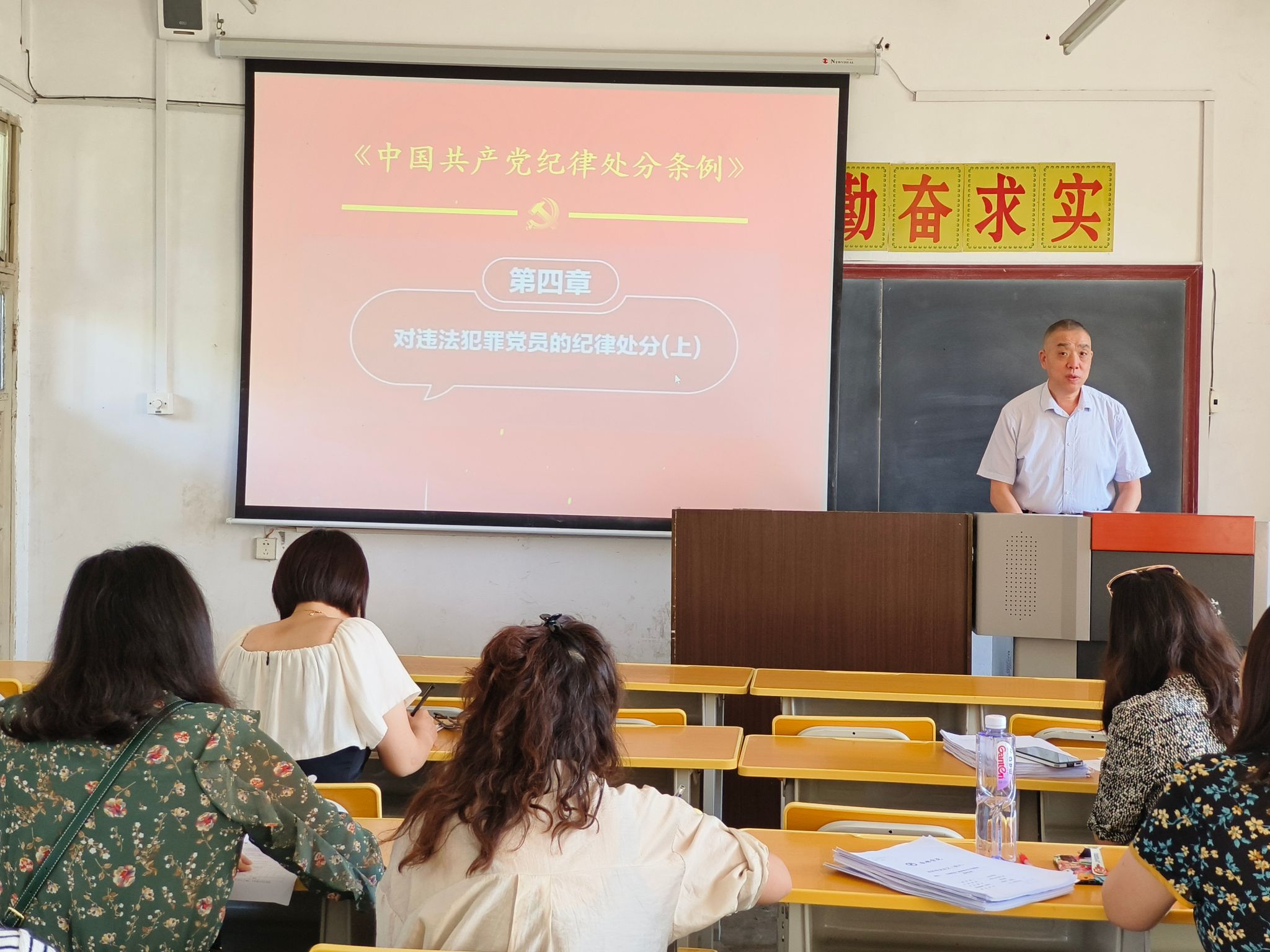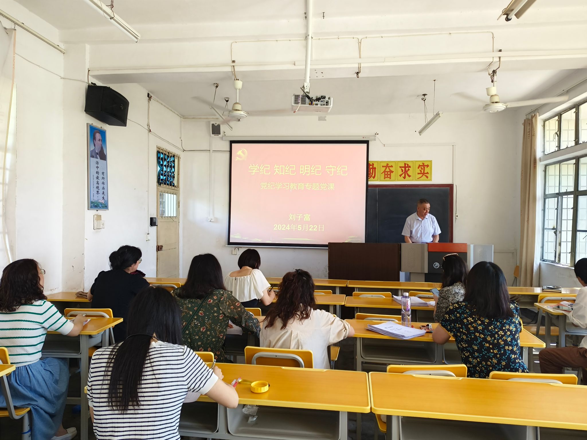 5月22日,外語學院教工二黨支部在6107室組織開展以“學紀、知紀、明紀、守紀”為主題的黨紀學習教育專題黨課學習,支部書記劉子富主講,全體黨員參加了學習。