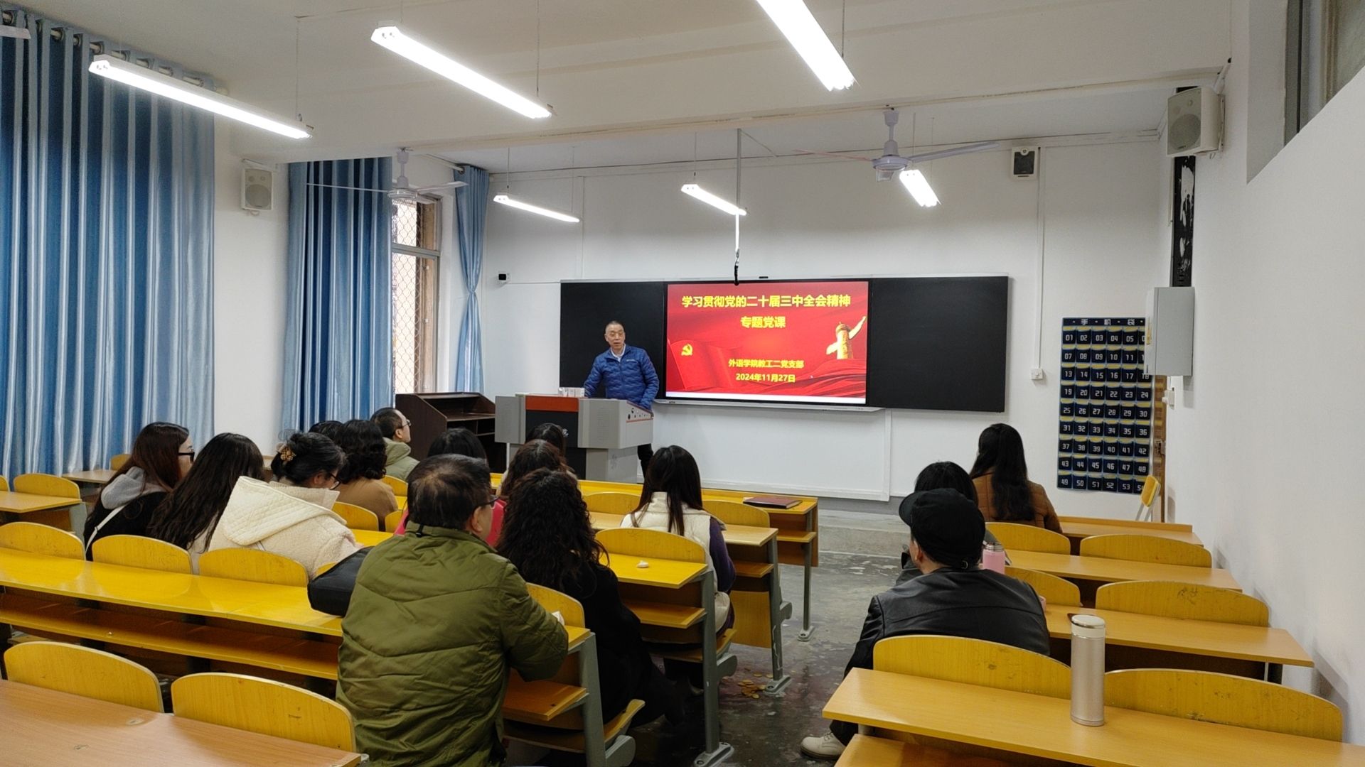 為深入學習貫徹黨的二十屆三中全會精神,切實提高全體黨員的政治站位,深化思想認識,增強責任意識,在教育教學審核評估等各項工作中能充分發(fā)揮戰(zhàn)斗堡壘作用和先鋒模范作用,外語學院教工二黨支部于11月27日在6106室組織開展了“學習貫徹黨的二十屆三中全會精神”專題黨課學習。