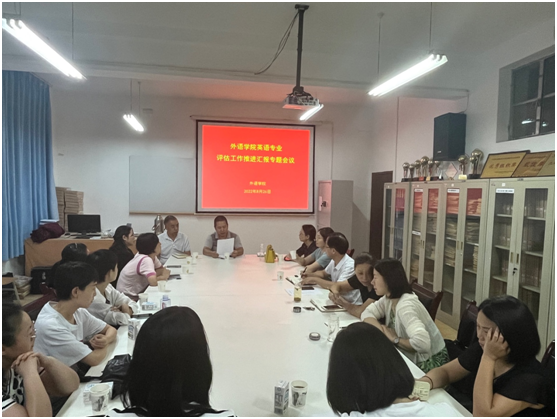 為了進(jìn)一步推進(jìn)英語(yǔ)(師范)專業(yè)認(rèn)證評(píng)估工作有序、高效地進(jìn)行,8月26日下午,外語(yǔ)學(xué)院在6109召開了專業(yè)評(píng)估工作推進(jìn)匯報(bào)專題會(huì)議。外語(yǔ)學(xué)院院長(zhǎng)張哲華、黨總支書記肖紅香、副院長(zhǎng)胡衛(wèi)衛(wèi)、英語(yǔ)師范專業(yè)認(rèn)證工作組負(fù)責(zé)人及第一批認(rèn)證工作組所有成員教師參加了會(huì)議。
