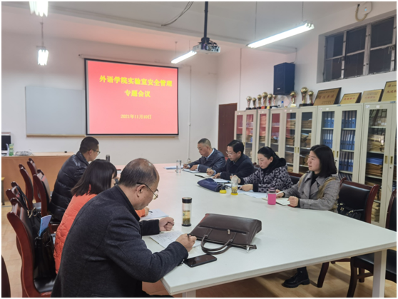 11月10日,外語學(xué)院在6109會議室召開實驗室安全管理專題會議,學(xué)院領(lǐng)導(dǎo)班子、實驗中心主任及副主任、實驗室管理員、系主任出席,會議由院長張哲華主持。