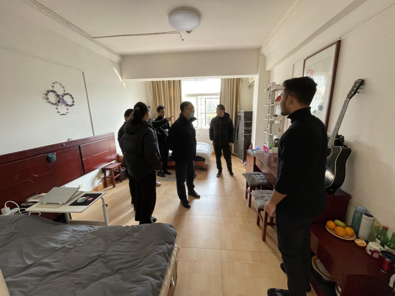 為嚴格落實學(xué)校安全穩(wěn)定相關(guān)制度,確保寒假期間留校外籍師生校園安全穩(wěn)定,1月26日下午,學(xué)校國際處(國際教育學(xué)院)、保衛(wèi)處、后勤保障處聯(lián)合對來華留學(xué)生及外籍教師公寓全面開展安全檢查。國際處(國際教育學(xué)院)、保衛(wèi)處與后勤保障處等部門負責(zé)人、相關(guān)工作人員參加了檢查。