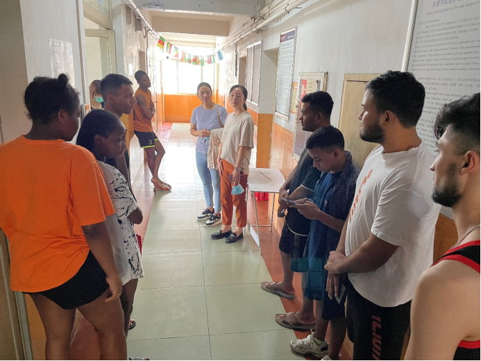日,中秋前夕,國(guó)際教育學(xué)院副院長(zhǎng)肖紅香、副院長(zhǎng)陳蕾、學(xué)工辦主任李泊霖、輔導(dǎo)員陸傳梓看望在校留學(xué)生,并檢查留學(xué)生在線課程學(xué)習(xí)情況。