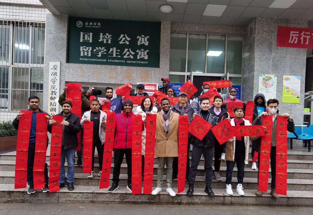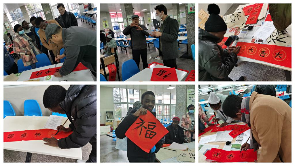 1月13日,為了讓留學(xué)生深入感知中國傳統(tǒng)文化,感受春節(jié)喜慶團圓的氛圍,在農(nóng)歷虎年到來之際,國際教育學(xué)院組織開展留學(xué)生迎新年文化體驗活動,副院長陳蕾、輔導(dǎo)員李賢松與全體在校留學(xué)生一起學(xué)寫春聯(lián)、福字,感受中國文化的魅力。活動特邀黨委統(tǒng)戰(zhàn)部副部長張富華現(xiàn)場指導(dǎo)師生們書寫春聯(lián)。