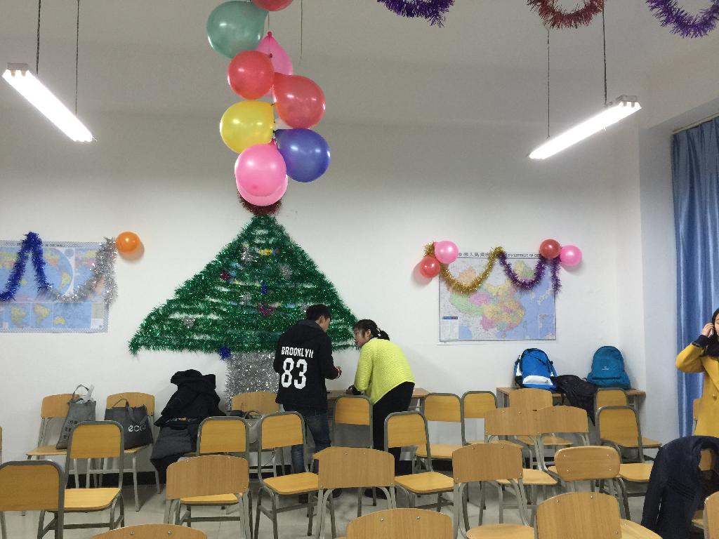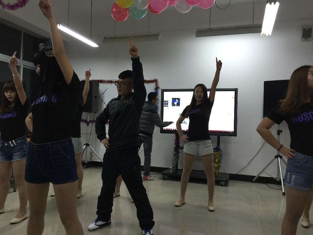 Jingle bells的Background music,精心布置的亮色氣球,彩帶拼起的創(chuàng)意圣誕樹,處處洋溢著歡樂溫馨的氛圍。來自留學(xué)生語伴同學(xué)們活力的開場舞拉開了聚會帷幕。青春逼人的笑臉,美妙的舞蹈律動,同學(xué)們用表演詮釋了對到場師生的熱烈歡迎。