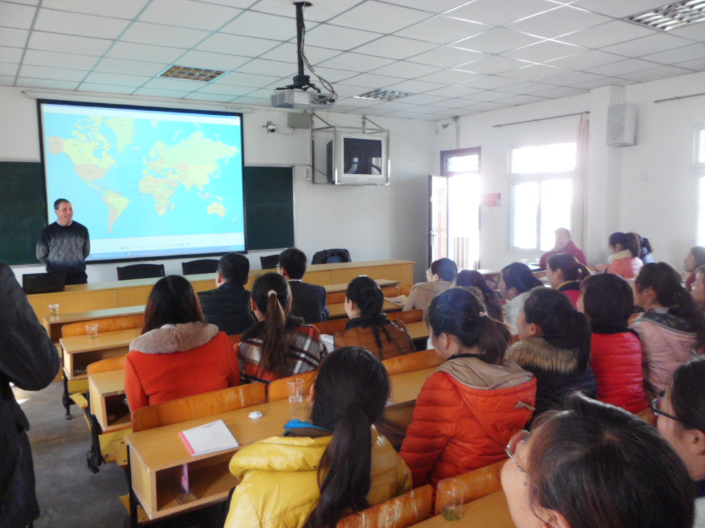 上午10時許,我校兩名外教首先為城關(guān)一中“TIC”英語班全體學員及部分教師進行了英語授課。課堂上,兩名外教不僅為師生們介紹了新西蘭、美國的風土人情、文化風貌、歷史沿革等,還與聽課學生進行了互動提問環(huán)節(jié),學生們踴躍發(fā)言,課堂氣氛輕松熱烈,我校外教風趣幽默的授課風格不時贏得陣陣掌聲。授課結(jié)束后,我校外教還在午間輔導時間前往各班與學生們進行英語交流,為他們提供了更多學習提高自身英語水平的機會。