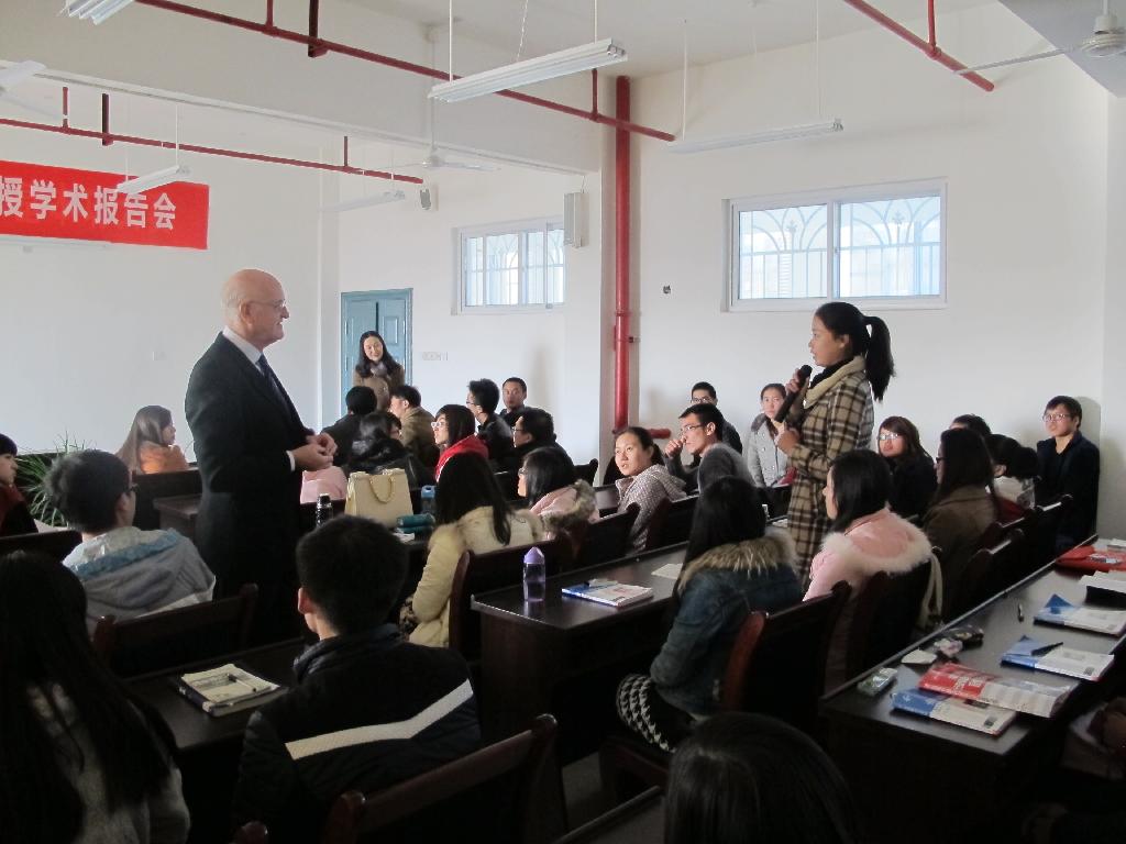 在近兩小時的報告中,Chris Ryan教授利用大量的調(diào)查資料、數(shù)據(jù)、圖片生動地分析了《旅游法》實施后的中國出境旅游動向、出境旅游者行為特征與變化,指出旅游目的地國家應(yīng)在旅游政策制定、旅游產(chǎn)品設(shè)計與供應(yīng)、市場營銷、市場運營與監(jiān)督等方面積極應(yīng)對旅游者需求和市場變化。在與我校師生分享其最新研究成果的同時,Chris Ryan教授對旅游研究方法進行了闡釋,向師生展示了如何使用Atlas ti等軟件進行網(wǎng)絡(luò)模型建立與云分析,如何進行定量分析以獲知旅游者行為特征、感知與期望的混合研究方法。報告深入淺出,使用了大量的實例和數(shù)據(jù),以生動形象的講授方式,帶動大家積極思考,博得了師生們的熱烈掌聲。在互動交流環(huán)節(jié),面對師生提出的問題,Chris Ryan教授一一進行了幽默而又耐心的精彩回答,現(xiàn)場氣氛活躍。這場報告使我校師生對中國和世界旅游業(yè)的發(fā)展有了更深一步的認識和了解,在分享海外最新旅游研究成果的同時,更受到科學研究方法的啟迪。