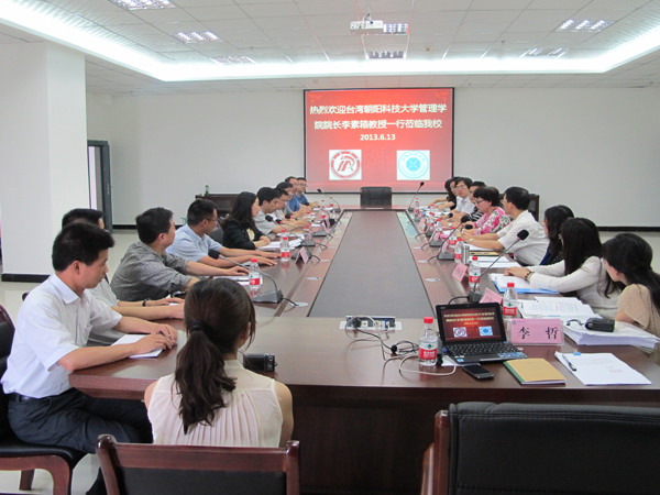 6月13日上午,臺灣朝陽科技大學(xué)管理學(xué)院院長李素箱一行9人訪問我校,就朝陽科技大學(xué)管理學(xué)院與我校經(jīng)濟(jì)與管理系之間進(jìn)一步開展合作進(jìn)行了深入的探討和交流。我校副校長陳剛、國際合作與交流處(港澳臺辦公室)處長崔曉明、經(jīng)濟(jì)與管理系主任余謙,副主任成黨偉、副書記李成仙及各專業(yè)教研室主任參加了會談。 陳剛對代表團(tuán)的來訪表示了熱烈的歡迎,并向來賓介紹了我校的歷史沿革、辦學(xué)情況、“三服務(wù)”的辦學(xué)宗旨及所處的安康市基本概況。同時陳剛也在談話中表示,希望未來能與朝陽科技大學(xué)管理學(xué)院在學(xué)生培養(yǎng)、教師培訓(xùn)、科研合作等方面展開深入的、富有成效的合作與交流,進(jìn)一步加深兩校之間、院系之間合作的深度,拓寬合作的層面。 李素箱介紹了朝陽科大管理學(xué)院的基本情況、辦學(xué)特色及辦學(xué)成就,詳細(xì)介紹了朝陽科大管理學(xué)院極具特色的產(chǎn)學(xué)合作模式、就業(yè)扶植計劃及學(xué)生“未畢業(yè)、先入行”、“畢業(yè)即就業(yè)”的培養(yǎng)思想和培養(yǎng)方式等。 余謙向朝陽科技大學(xué)管理學(xué)院李素箱院長及各系所主任詳細(xì)地介紹了經(jīng)濟(jì)與管理系人才培養(yǎng)目標(biāo)和培養(yǎng)特色,雙方交流了進(jìn)一步合作的內(nèi)容和方式。崔曉明與來賓就開展兩校學(xué)生互訪等多種雙向交流形式、教師培訓(xùn)、產(chǎn)學(xué)研合作等進(jìn)行探討,為兩校間進(jìn)一步合作奠定了基礎(chǔ)。