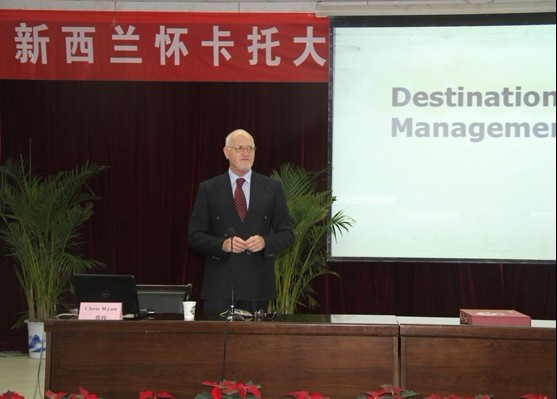 訪問期間,Christopher Ryan教授還在我校圖書館報(bào)告廳為安康市各縣區(qū)旅游行業(yè)主管部門負(fù)責(zé)人、我院旅游專業(yè)師生等進(jìn)行了題為《旅游目的地生命周期》的講座。安康市市長(zhǎng)方瑋峰,副市長(zhǎng)巨拴科,副市長(zhǎng)杜壽平,市長(zhǎng)助理、安康市旅游局局長(zhǎng)王漢琳等參加了講座。Chris Ryan教授結(jié)合實(shí)例,深入淺出地分析了旅游目的地的生命周期,以及不同生命周期中應(yīng)該注意的問題,指出旅游目的地的規(guī)劃對(duì)于旅游目的地發(fā)展具有重大影響,應(yīng)該從長(zhǎng)遠(yuǎn)著手注重發(fā)掘本地文化遺產(chǎn),弘揚(yáng)本地特色,做好旅游業(yè)發(fā)展的長(zhǎng)期規(guī)劃。教授運(yùn)用了大量的數(shù)據(jù)、圖片及視頻資料,為與會(huì)人員呈現(xiàn)了一場(chǎng)精彩的講座。之后Chris Ryan教授與師生們又進(jìn)行了現(xiàn)場(chǎng)交流,回答了同學(xué)們關(guān)于旅游發(fā)展的問題及我院師生關(guān)于旅游專業(yè)實(shí)踐能力培養(yǎng)的有關(guān)問題。