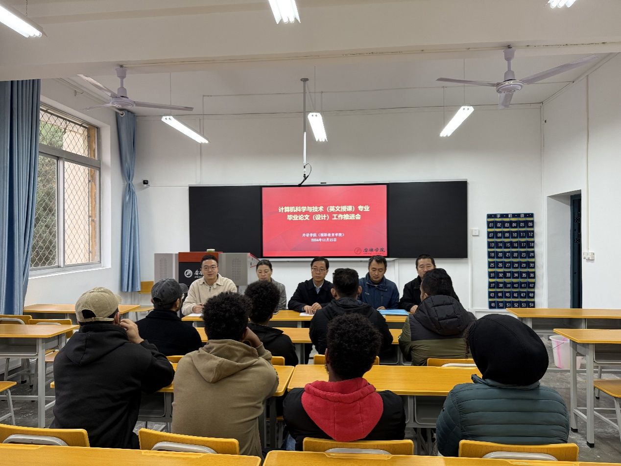 為進(jìn)一步推進(jìn)留學(xué)生畢業(yè)論文工作,確保順利完成學(xué)業(yè),11月15日上午9:00,國(guó)際教育學(xué)院在江南校區(qū)6206教室召開(kāi)了專題工作推進(jìn)會(huì)。國(guó)際教育學(xué)院院長(zhǎng)張哲華、副院長(zhǎng)肖紅香、電信學(xué)院計(jì)算機(jī)系主任梁建勇、外語(yǔ)學(xué)院教師孫衛(wèi)斌、留學(xué)生專職輔導(dǎo)員陸傳梓以及全體留學(xué)生參加了此次會(huì)議,會(huì)議由陸傳梓主持。